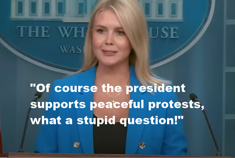 Folks have raised some concerns about the reaction these days of higher levels of the federal government to grassroots protests, but have no worries! We have assurance from Press Secretary K-K-Karoline Leavitt that we are on solid ground (link to video):