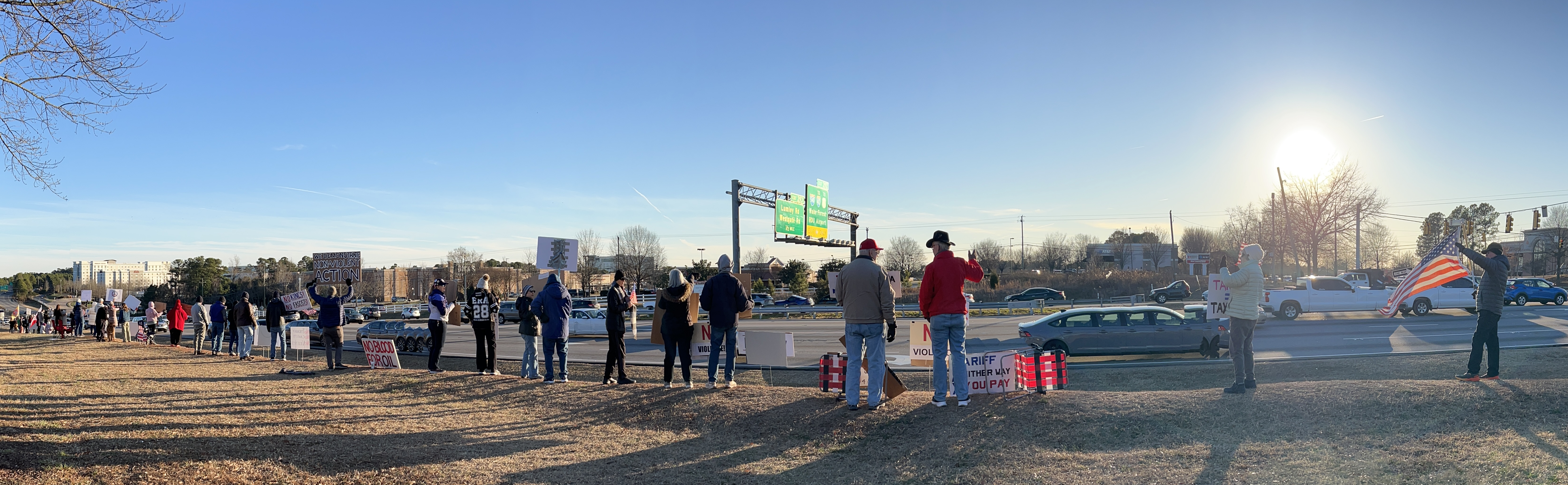 LOCATION: Public right of way, NE corner Glenwood & Brier Creek Pkwy (near Starbucks, Red Robin, in Walmart shopping center). We’ll be on the elevated grassy area along Glenwood, away from the traffic, and along the sidewalk on Brier Creek Parkway.